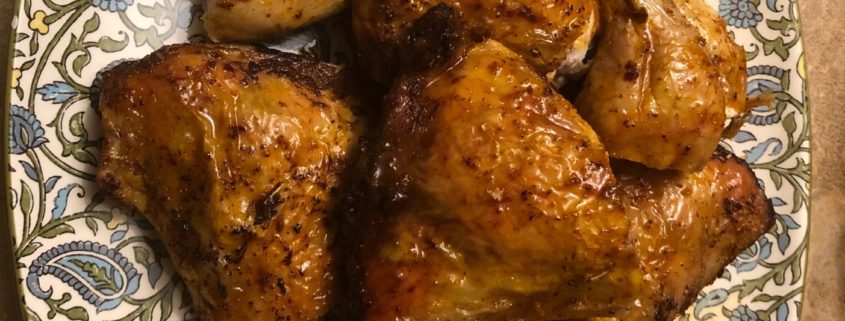 I find that this easy recipe is still one of my favorites. The spices are readily available in your house and there is nothing exotic in it. However, the way you prepare the chicken is the trick to it. It’s easy but results in a crispy skin and is succulent.
