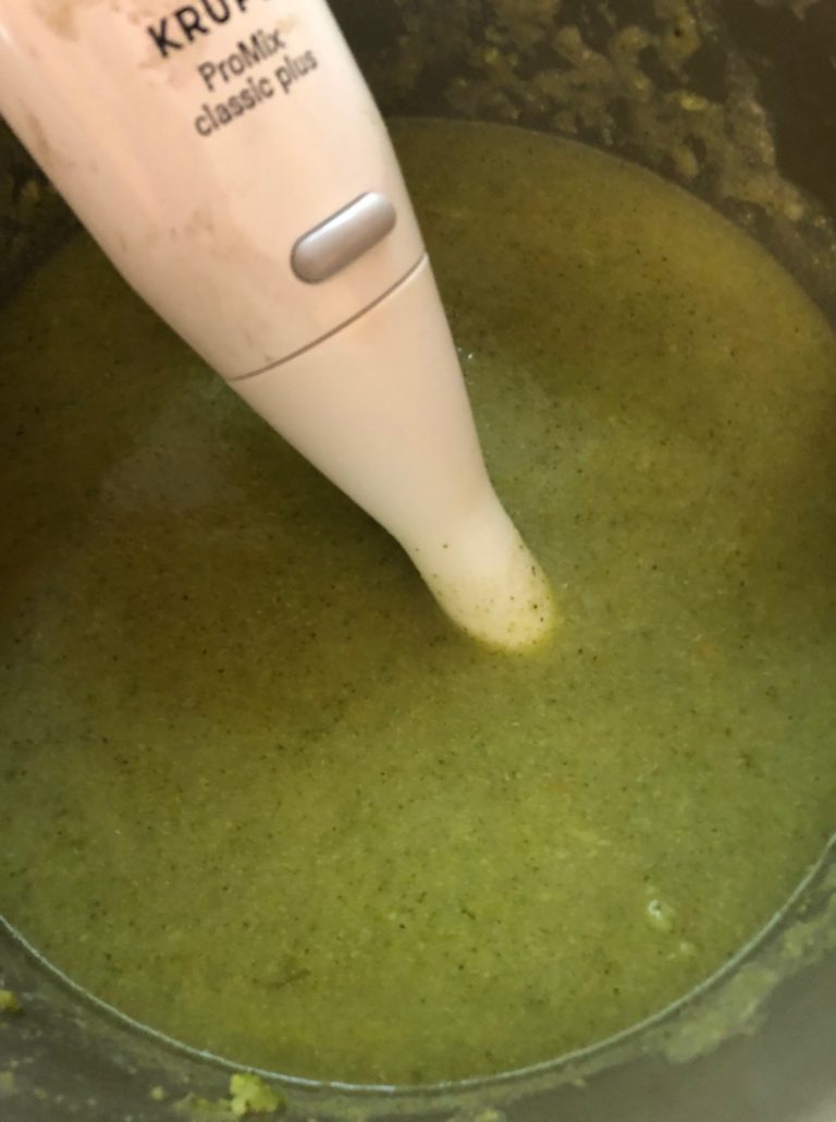 If you left too much stalk on the broccoli and it’s not tender, it’s not too late, cut it off the flowerets and scoop it out. Nothing more unappealing than bits of hard stalk in your soup.