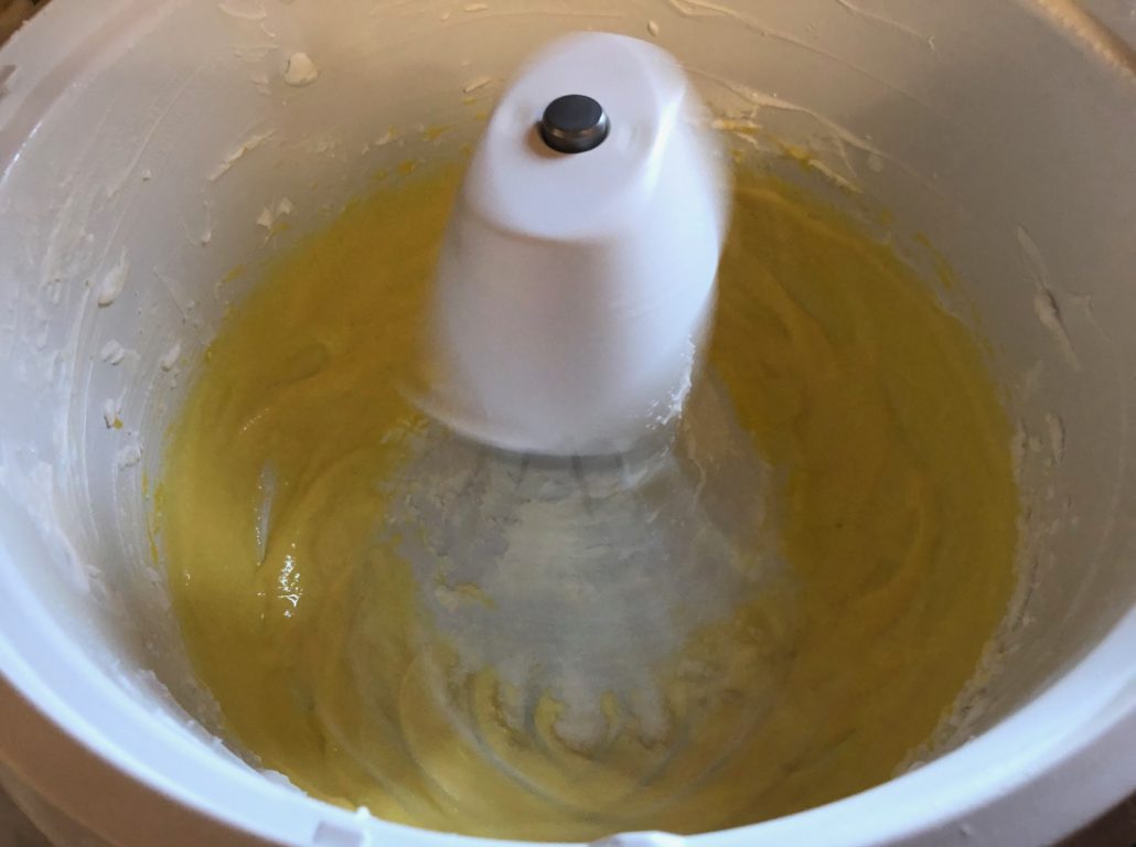 Separate the eggs, beating the whites till foamy and gradually adding the 1/4 cup of the sugar and the pinch of salt till fluffy but not dry. Scoop out the whites, put in a bowl and beat the yolks in the mixer with the other 1/4 cup of sugar till fluffy, adding the peel and juice. Pour on top of the whites in the separate bowl. Lastly beat the Rich’s Whip till fluffy and combine all together, gently folding in with a spatula.