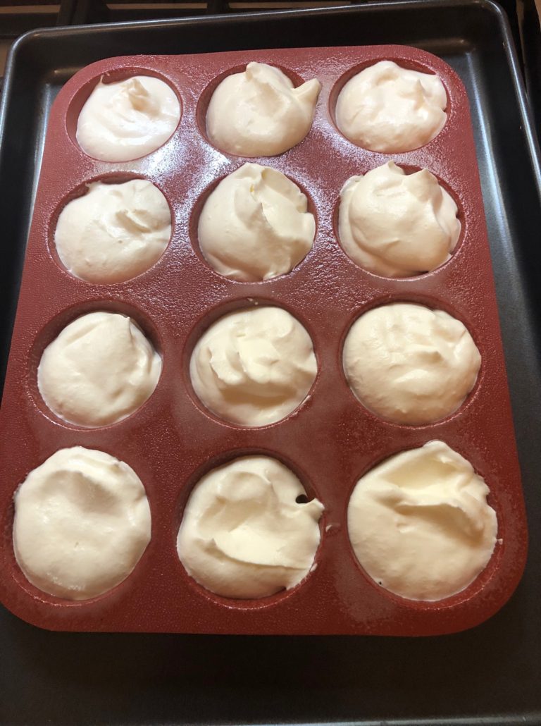 Since the molds are silicon and floppy, I put a baking tray under it to keep steady in the freezer.