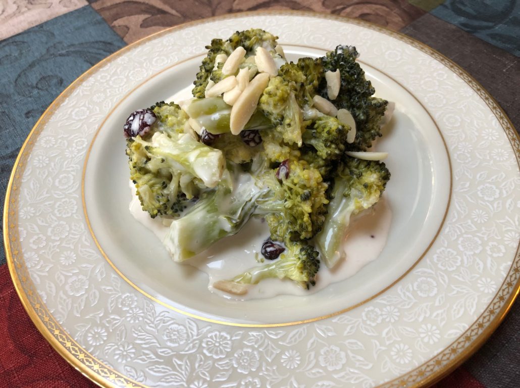 So, it makes sense that she has a few salads that I particularly love and I got the recipe from her. It’s a fairly simple recipe and it’s especially delicious if you use fresh broccoli for it since that is the main ingredient in the dish. I find it super simple to just steam in the microwave for about 8 minutes to get that raw taste out of the marvelous green veggie and it will still have a slightly “al dente” feel to it but not actually crunchy which I care for less than the al dente style.