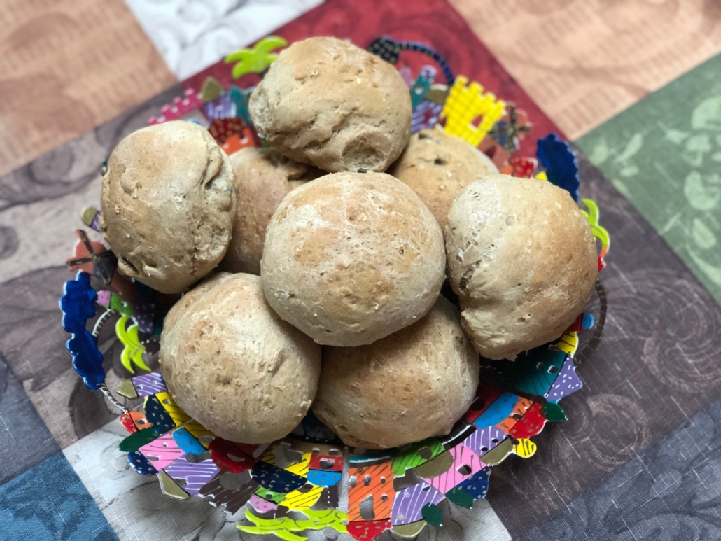 I experimented with these one day when feeling under the weather, looking for a nice hearty bread to make but then decided to switch to rolls. After all, it’s just me and DH and once you slice into a loaf, it ain’t quite the same. So, know now, these freeze amazingly well and are still providing lunches and dinner rolls (heck, I eat these at breakfast too) whenever we want a nice, satisfying roll.