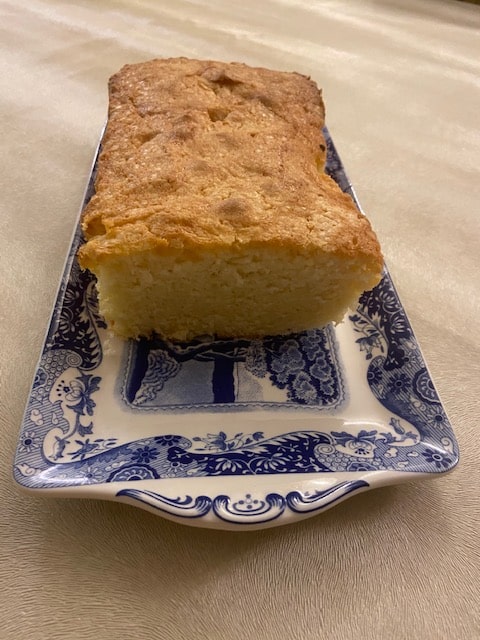 She actually gave me this recipe many years ago and I made it once or twice but I would cheat and not beat the marg/butter and sugar as long as I was supposed to. So it never achieved that amazing texture that her cake would. I am older and wiser and a more exacting baker and I tell you all this so that you learn from me. Beat it for the whole 13 (yes, thirteen!) minutes as it stipulates in the recipe and you won’t be sorry. Whipping the air into the sugar/butter mixture (which is what you are doing by beating it) is part of the leavening process, i.e. helps it to rise, since you don’t use much baking powder in the recipe. This is what makes it so luscious and not too dense at all despite being a pound cake. And hey, no separating eggs this way. Win!