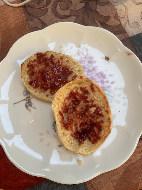When ready to eat, take a fork and stick the tines into the center of a muffin, poking it all around till it mostly splits in half on its own, you might need to gently pry apart. Then toast ’em! You must, they are born to be toasted.