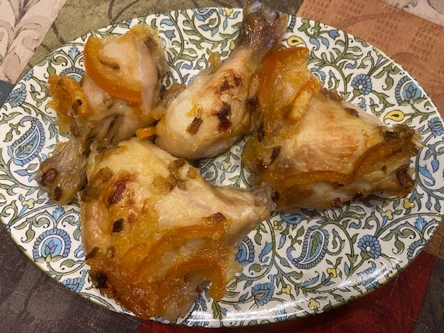 Many of us are still recovering from the cooking marathon that usually accompanies a holiday. Passover has come and gone and is remembered with fondness and joy but hey, some of us just wanna throw something easy together. This is the dish. Now I admit, I made my own marmalade from the Chush Chash tree (bitter orange) that my friend Miriam has in her backyard and was so gracious as to give me a bunch. Now it came out tasting amazing (with a strong undernote of bitter that DH was wild about) but truthfully the marmalade didn’t set up 100 %, it was jiggly but not as firm as it should’ve been, probably cuz I made this on Friday and was in a hurry. So I didn’t send any back to Miriam, mea culpa, do you still love me? Anyway, I decided to use it as a sauce for chicken instead of as a spread on toast. Clearly, you can save yourselves the hassle of making the marmalade and simply buying a nice jar instead. But you can do your own marmalade if you wish.
