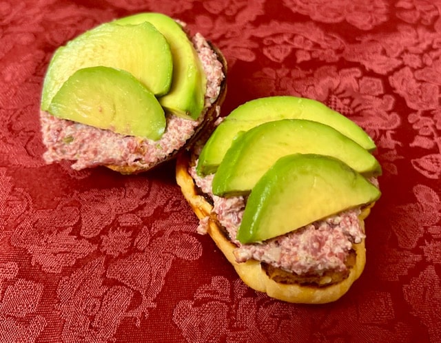 This particular version of avocado toast came to fruition when I had leftover corned beef from our Shabbat meal and I just didn’t feel like a regular old corned beef sandwich. I eyed my avocados which had successfully ripened on my countertop, and said, hmmm, corned beef/avocado…and eureka, the two combined in my mind. So without further ado, I will show you how to put together this incredible deliciousness which ensued. Btw, should you have any leftover corned beef spread and no more avocado, no worries, it’s awesomeness on its own will prove itself.