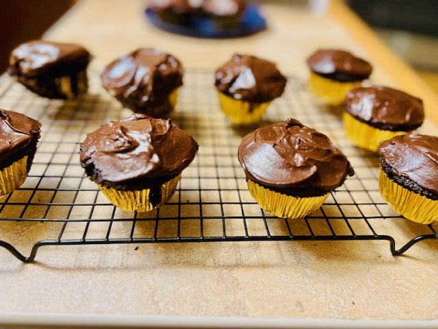 Do not overbake the cupcakes. Let cool in pan on wire rack and remove with paper/foil casing.