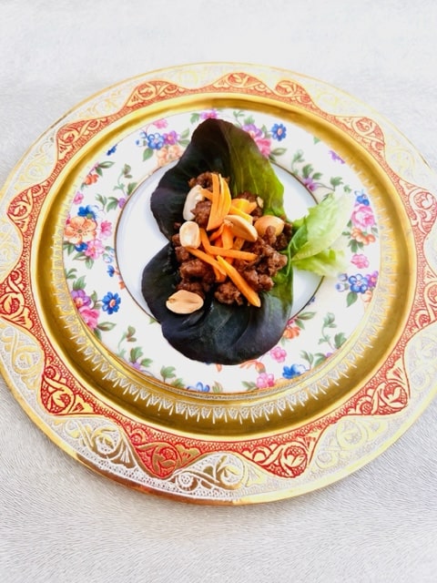 On our travels, we come across different types of cuisine which give me ideas of new things to try and play around with. These lettuce wraps are one such idea. When in Florida, there’s a restaurant we enjoy called 26 Tapas that has myriad appetizers and Peruvian cuisine. DH and I tried the lettuce wraps (it was with fish as it’s a dairy/fish restaurant). We both loved them and the idea of the lettuce as the “bread” of the sandwich so to speak, keeps it lighter. This brought me to the idea of using a meat filling, balancing the lighter lettuce with the somewhat heavier meat filling and yet, you get a clean eating feeling from this combo.